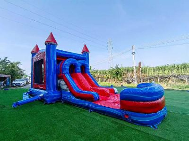 A versatile inflatable bounce house with a slide that converts easily between wet and dry use. Bright and roomy, it gives kids a safe, enclosed space to jump and play while the slide adds an extra dash of excitement. For water fun, simply connect a hose to the slide area to create a slick, refreshing ride; for dry events, it functions as a classic bounce-and-slide combo. Reinforced seams, safety netting, and a low-entry ramp help keep play contained and accessible, while the high walls and covered top offer shade and added protection. Ideal for backyard parties, family gatherings, or neighborhood events where you want both bouncing and sliding action in one convenient rental.